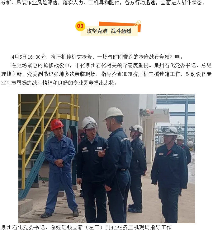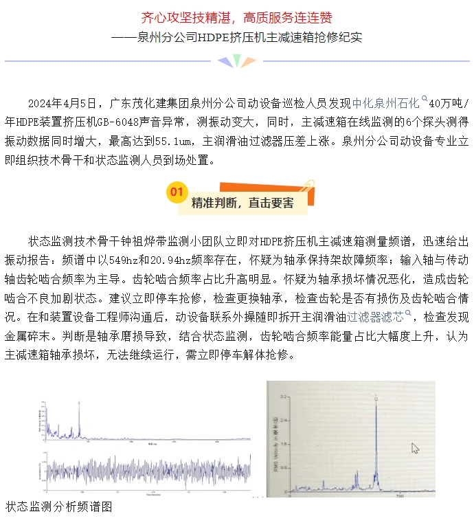 泉州分公司HDPE擠壓機(jī)主減速箱搶修紀(jì)實(shí)