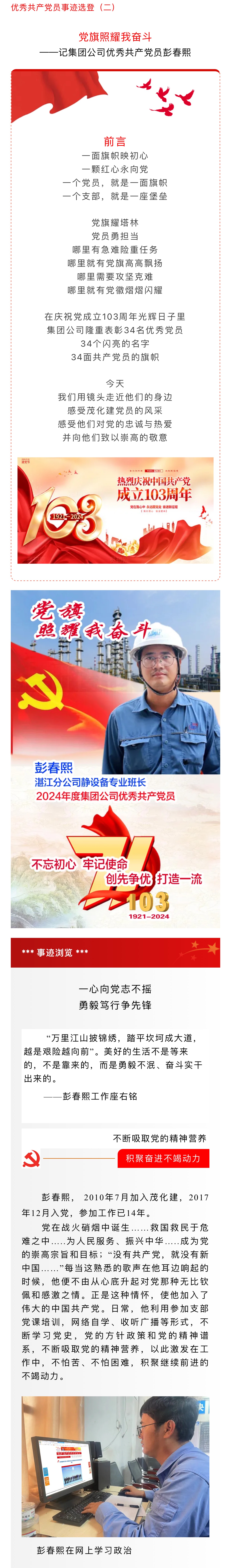 黨旗照耀我奮斗——記集團公司優(yōu)秀共產(chǎn)黨員彭春熙