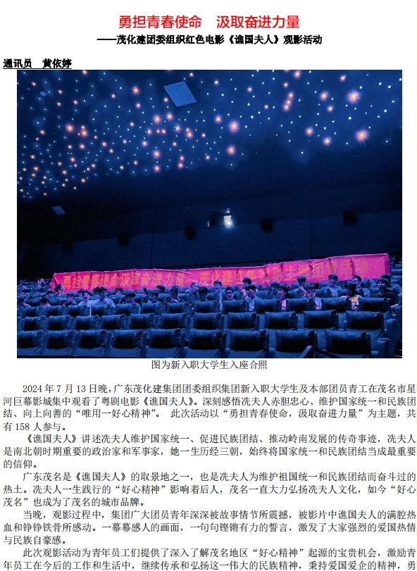 勇?lián)啻菏姑?汲取奮進(jìn)力量 ——茂化建團(tuán)委組織紅色電影《譙國夫人》觀影活動