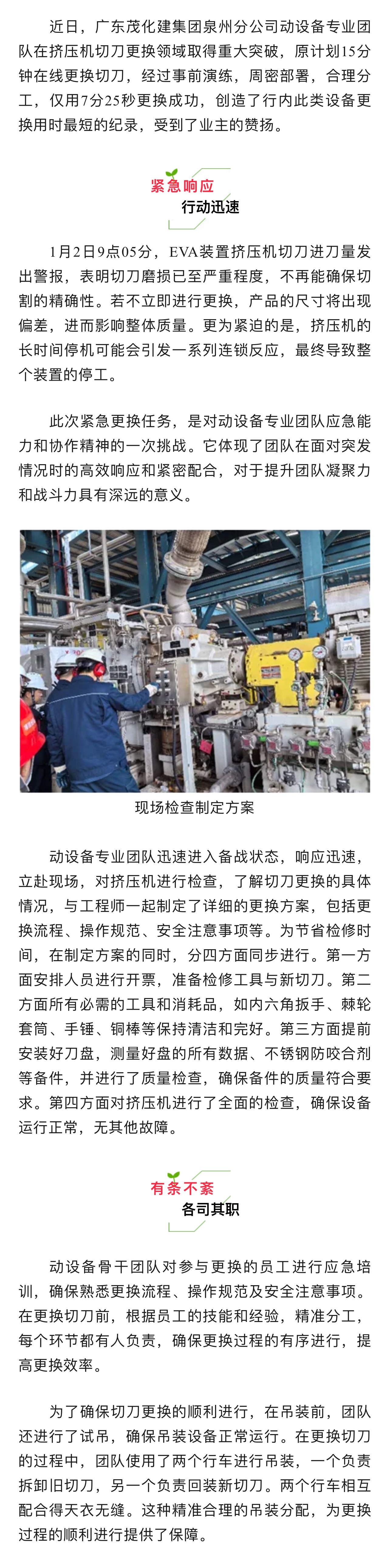 超棒!泉州動設(shè)備團隊 | 7分25秒成功在線更換擠壓機切刀
