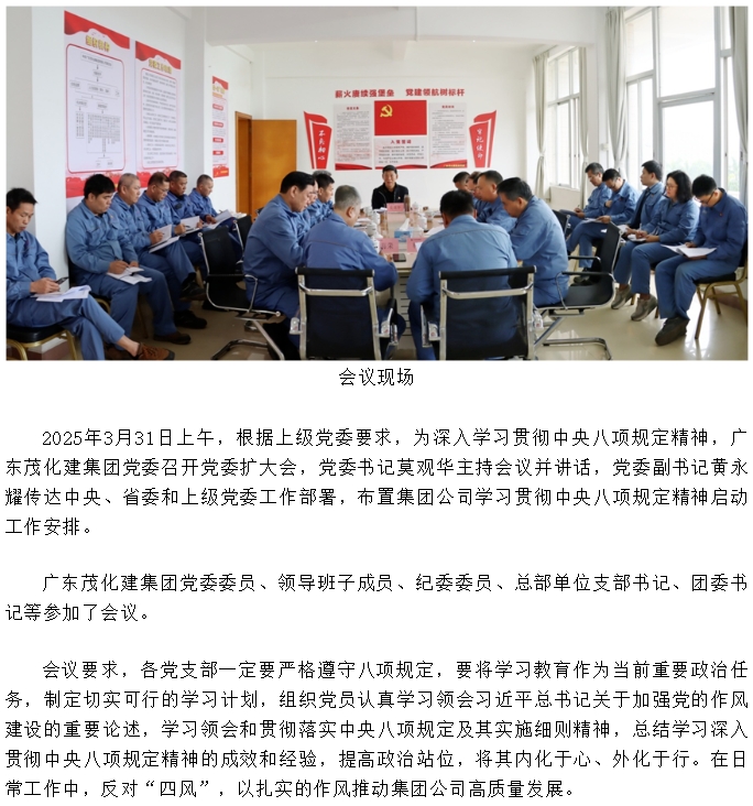 廣東茂化建集團黨委召開貫徹中央八項規(guī)定精神學(xué)習(xí)教育部署啟動會