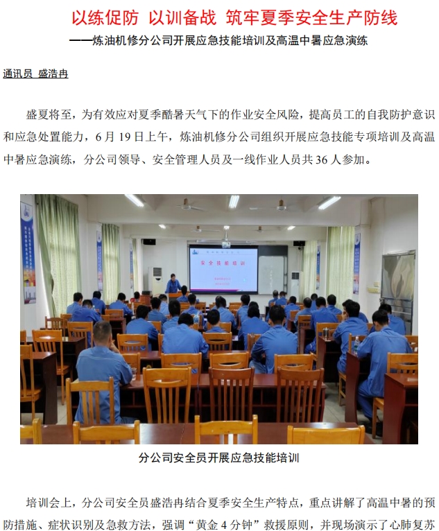 煉油機修分公司開展應急技能培訓及高溫中暑應急演練