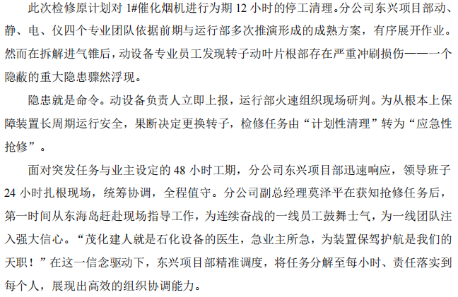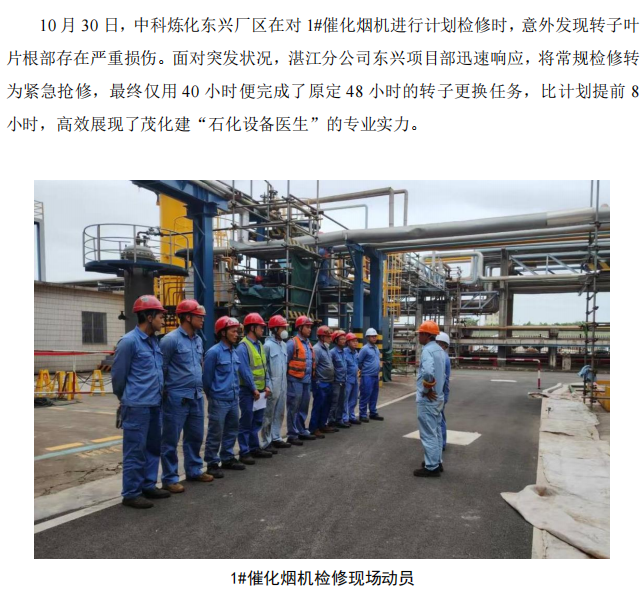 湛江分公司東興項目部:疾速 40 小時,打贏中科煉化催化煙機(jī)搶修攻堅戰(zhàn)