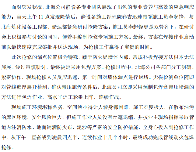 北海公司緊急搶修:高效攻堅,力保安全防線