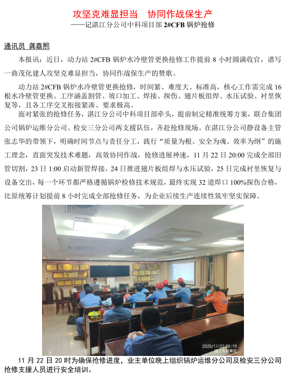 湛江分公司中科項(xiàng)目部 2#CFB 鍋爐搶修