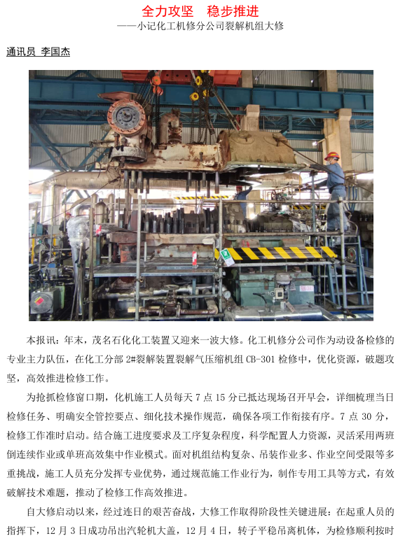 記化工機修分公司裂解機組大修
